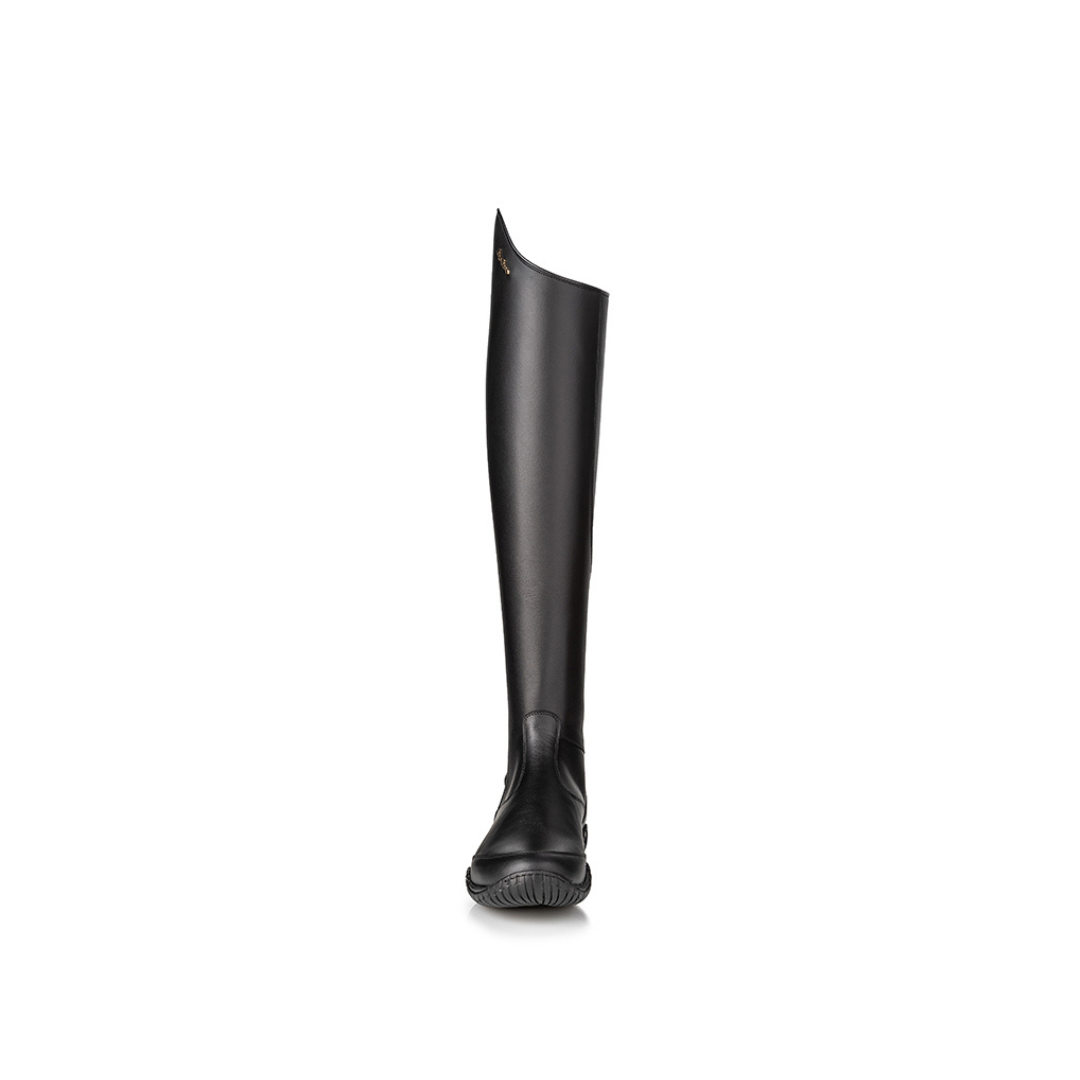Elastico posteriore rinforzato; poggia sperone applicato su proteggi cerniera.