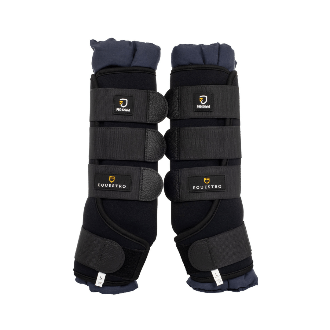 Protezioni da box anatomiche con chiusura in velcro, per offrire una soluzione pratica e sicura per proteggere e sostenere gli arti del cavallo mentre รจ a riposo in box o durante i trasporti.
