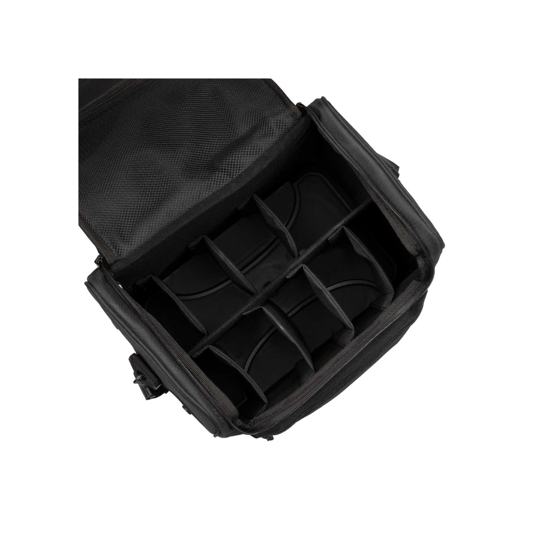 Borsa da grooming realizzata in cordura, robusta e di facile manutenzione. I divisori interni sono realizzati con fodera liscia lavabile.