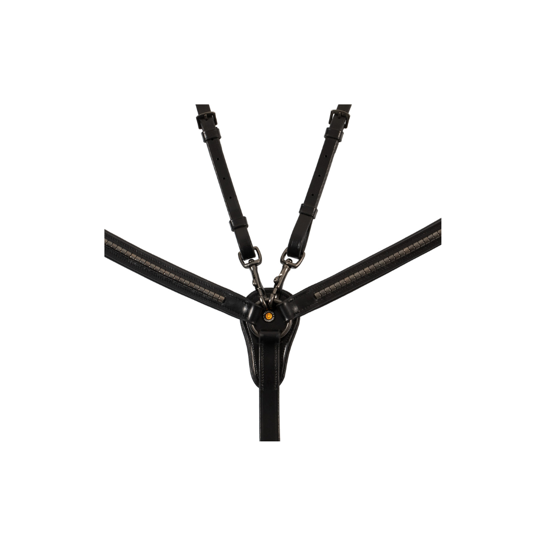 Ogni cinghia o fibbia รจ regolabile affinchรฉ il pettorale si possa adattare perfettamente a ogni tipo di cavallo.
