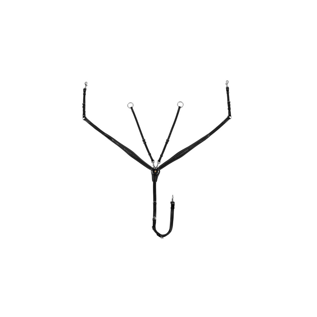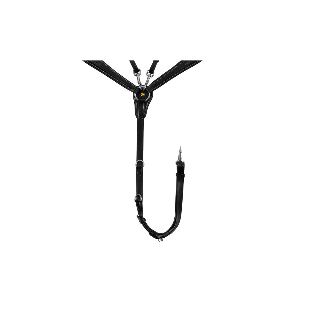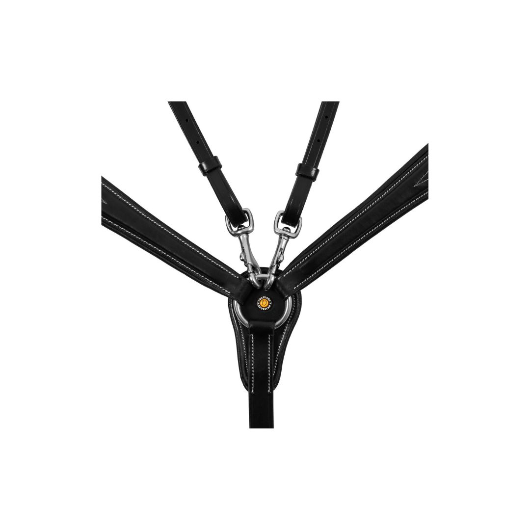 Ogni cinghia o fibbia รจ regolabile affinchรฉ il pettorale si possa adattare perfettamente a ogni tipo di cavallo.