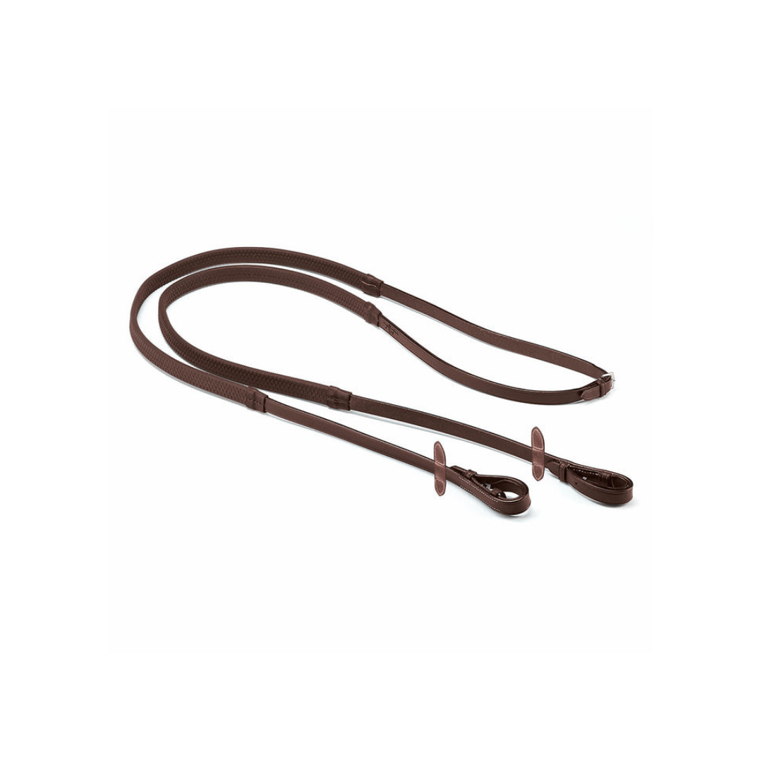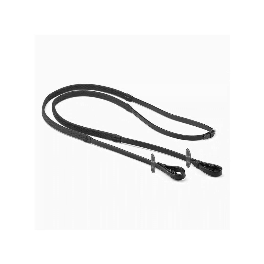 Resistenti redini in gomma con inserti in cuoio naturale. Larghezza 5/8″