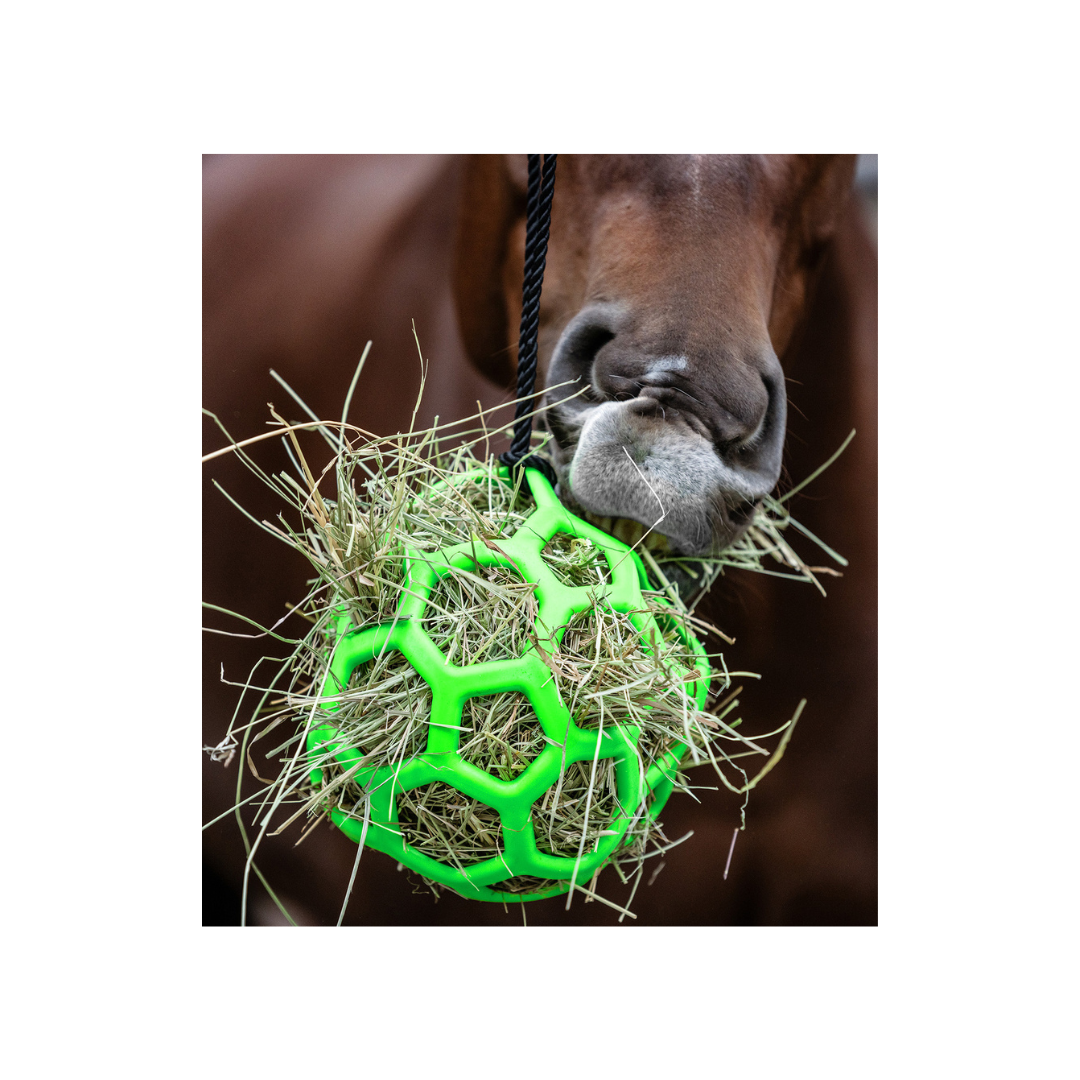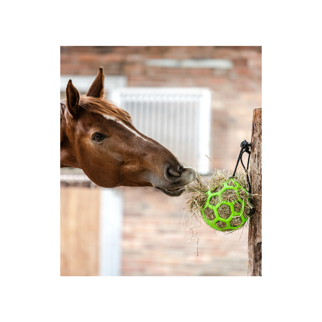 La palla per il fieno รจ ideale per prevenire la noia e per rallentare e razionare l’assunzione di fieno.