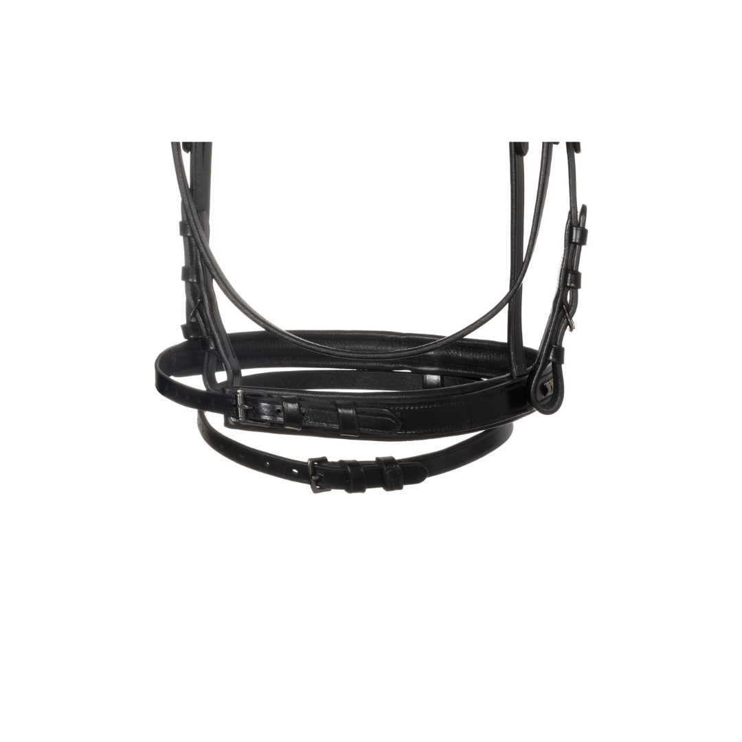 Questa briglia inglese in pelle unisce funzionalità e stile, offrendo un accessorio raffinato e resistente per il tuo cavallo. Il frontalino e la capezzina sono impreziositi da una fila di clincher, che donano un tocco di eleganza classica senza rinunciare alla classicità. Il design anatomico della testiera assicura il massimo comfort al cavallo, riducendo la pressione sui punti sensibili.