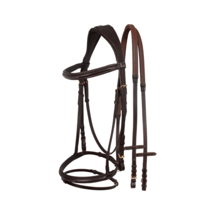 Testiera EQUESTRO inglese con ricami, completa di redini – Deco
